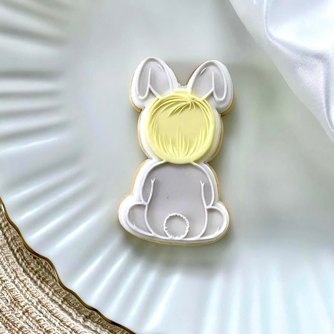 Easter Collection: Cookie cutter and stamp of a baby boy wearing a bunny outfit.