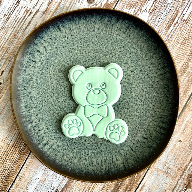 Emporte-pièce et tampon ourson et son nœud papillon.