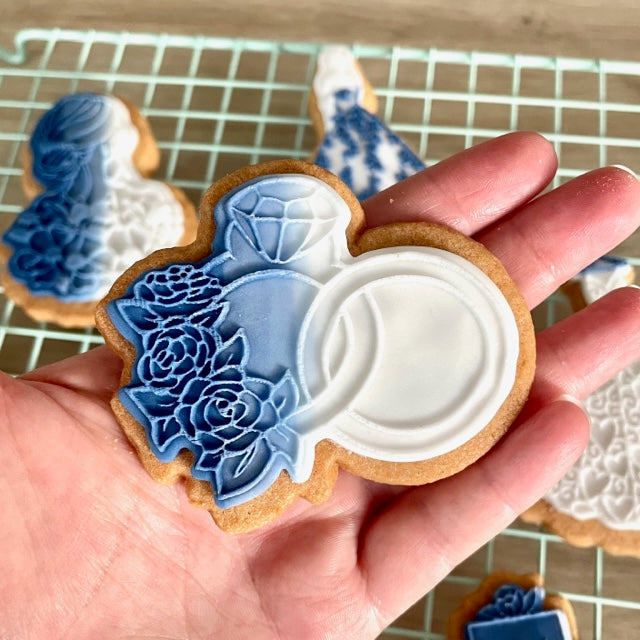 Emporte-pièce et tampon duo d'alliances, bague de mariage, ornée d'un diamant et de fleurs, par l'illustratrice Tagamely.