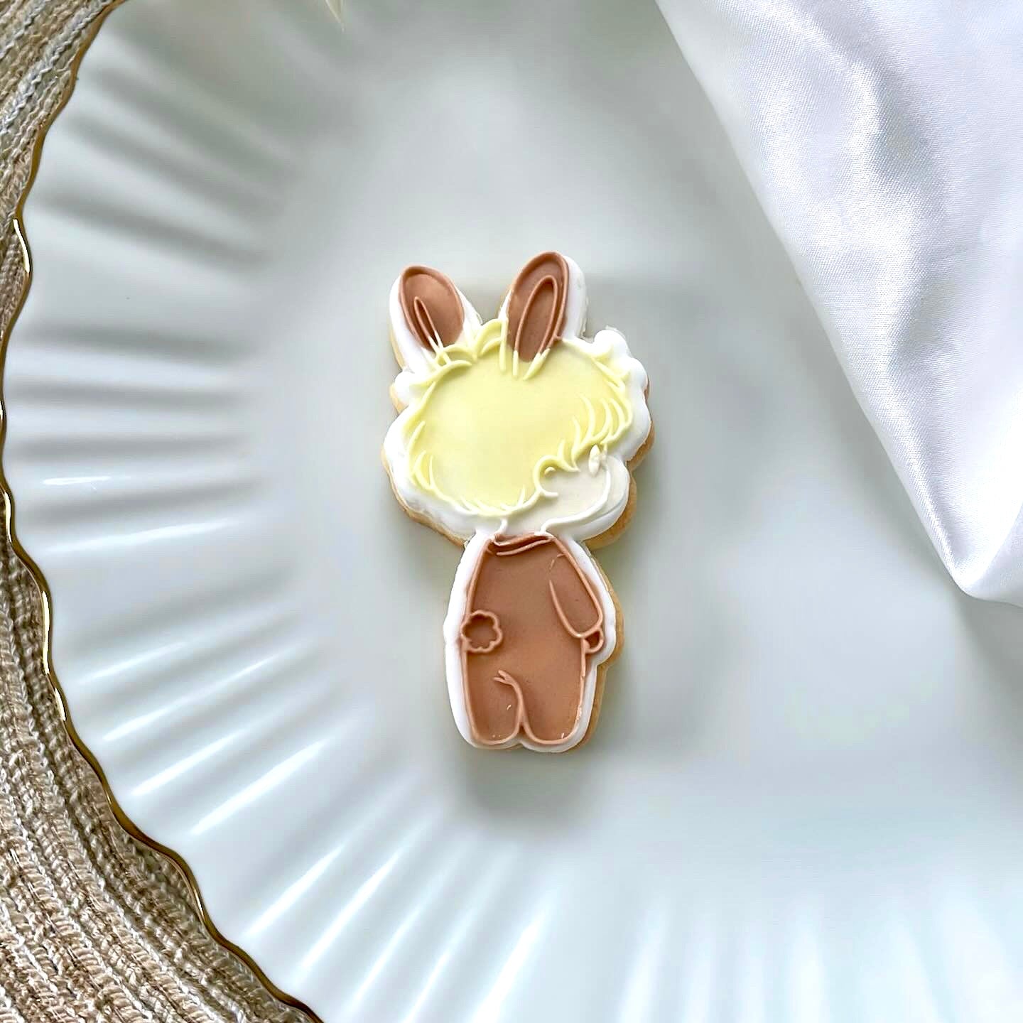 Collection de Pâques : Emporte-pièce et tampon d'un garçon dos une tenue de lapin.
