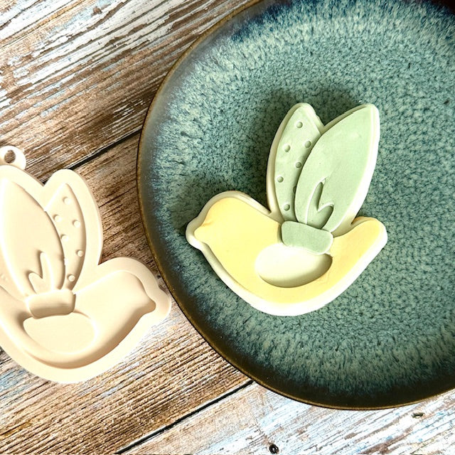 Emporte-pièce et tampon d'un anneau de dentition oiseau.