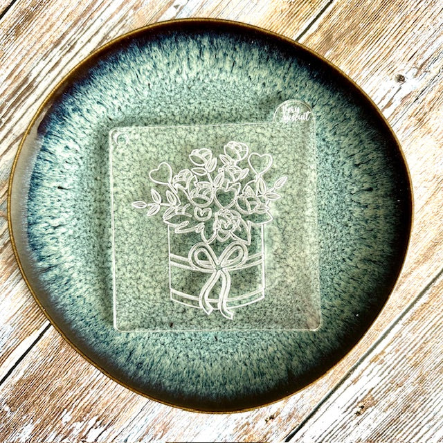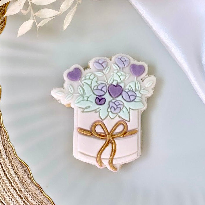 Emporte-pièce et tampon d'une boite remplie de fleurs.
