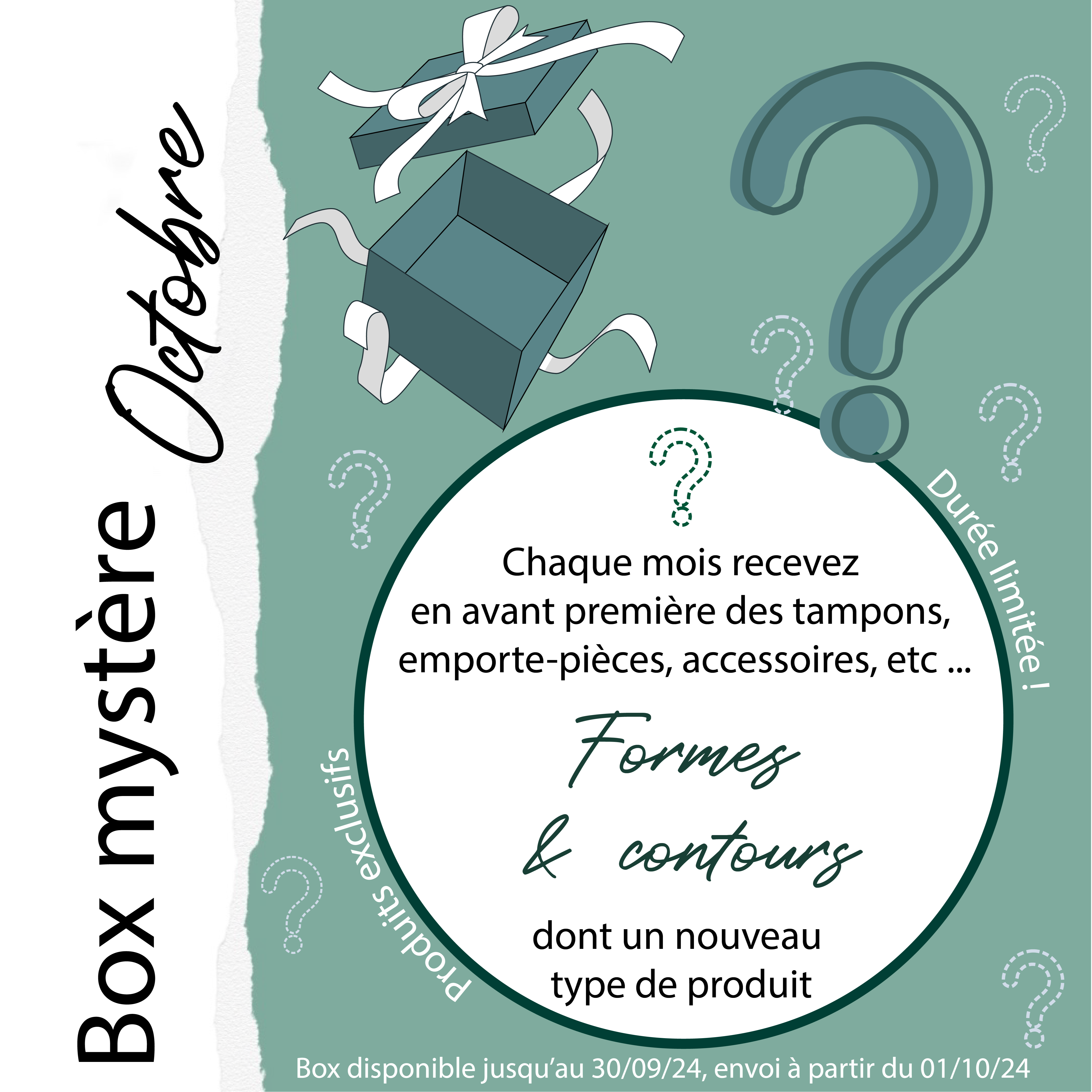 Chaque mois découvrez une nouvelle box mystère comprenant des tampons, emporte-pièces, accessoires, etc ... en avant première. Comme vous nous faites confiance, nous vous offrons une remise de 30% sur le tarif de vente.