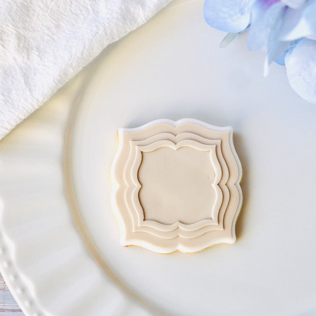 Etalez la pâte à sucre d'une épaisseur d'environ 3 mm. Appuyez le tampon et retirez le délicatement. Utilisé seul, le tampon peut ensuite être découpé avec l'emporte-pièce de votre choix.