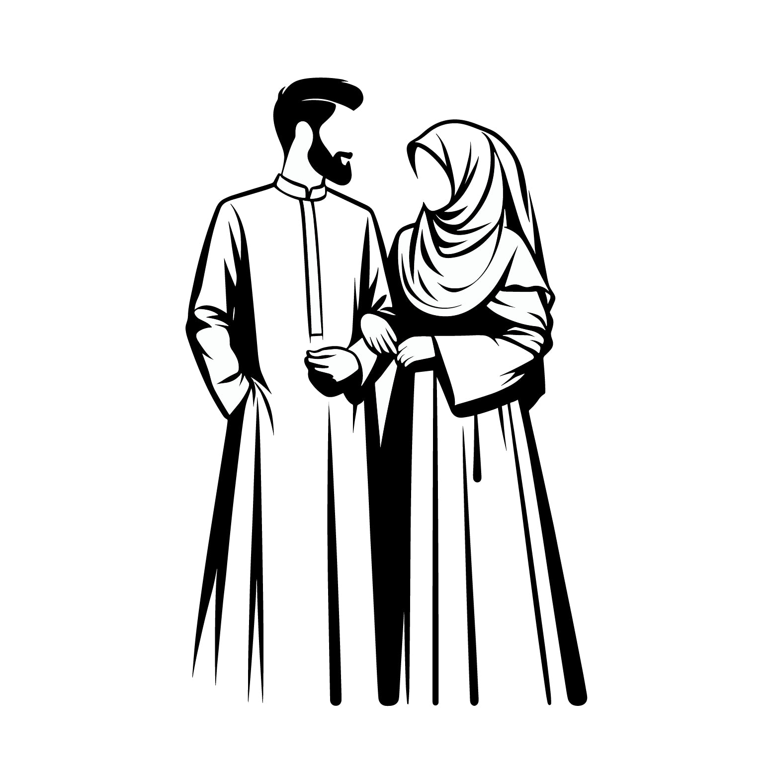 Emporte-pièce et tampon d'une couple de marié, l'homme porte un jabador et la femme un hijab.