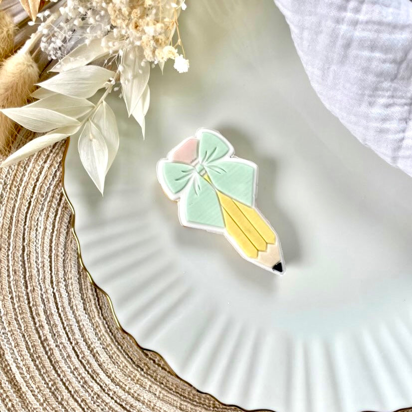 Emporte-pièce et tampon d'un crayon orné d'un noeud.