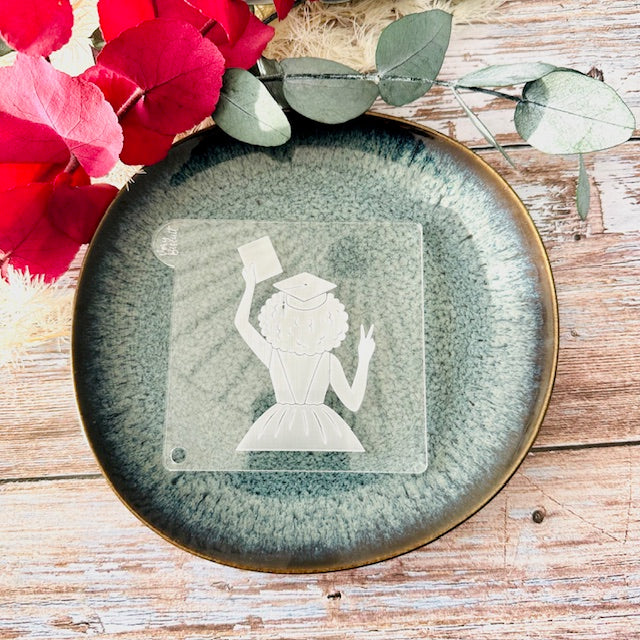 Emporte-pièce et tampon d'une étudiante de dos.