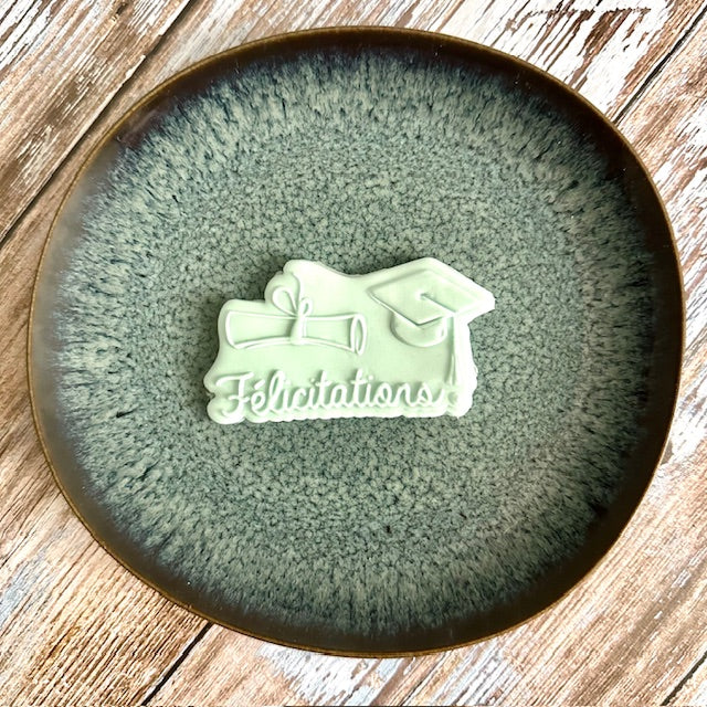 Emporte-pièce et tampon de félicitations pour un diplôme.