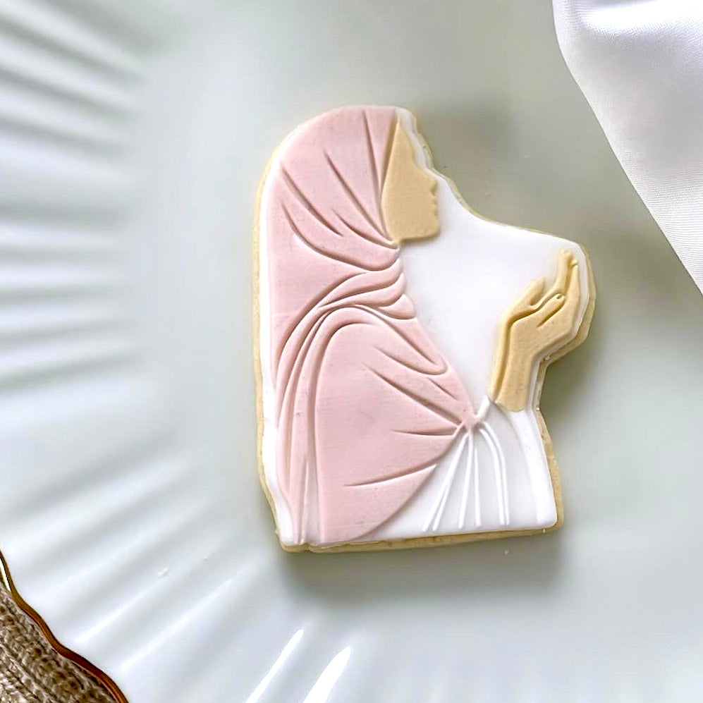 Collection Eid : Emporte-pièce et tampon d'une femme en hijab priant les mains vers le ciel.