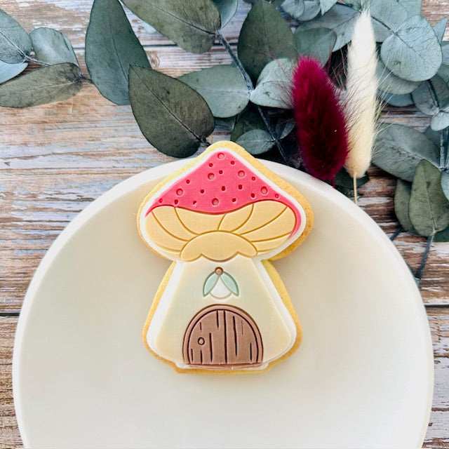 Emporte-pièce et tampon d'une maison champignon avec une fenêtre.