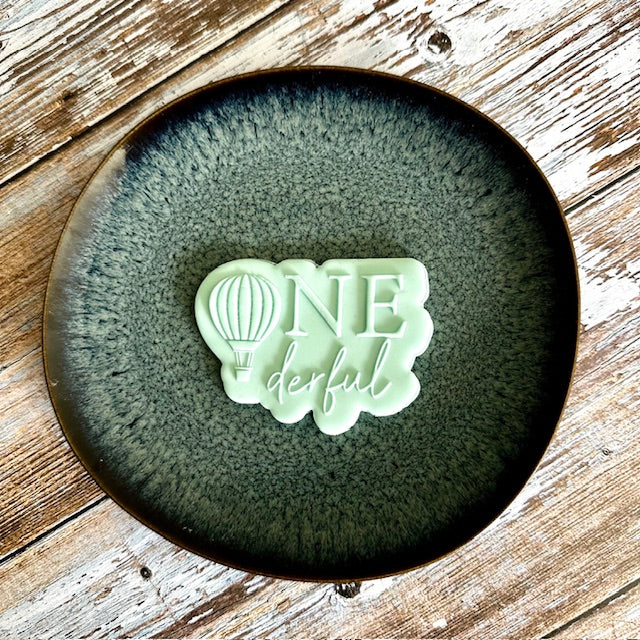 Emporte-pièce et tampon One derful (wonderful) et sa montgolfière.