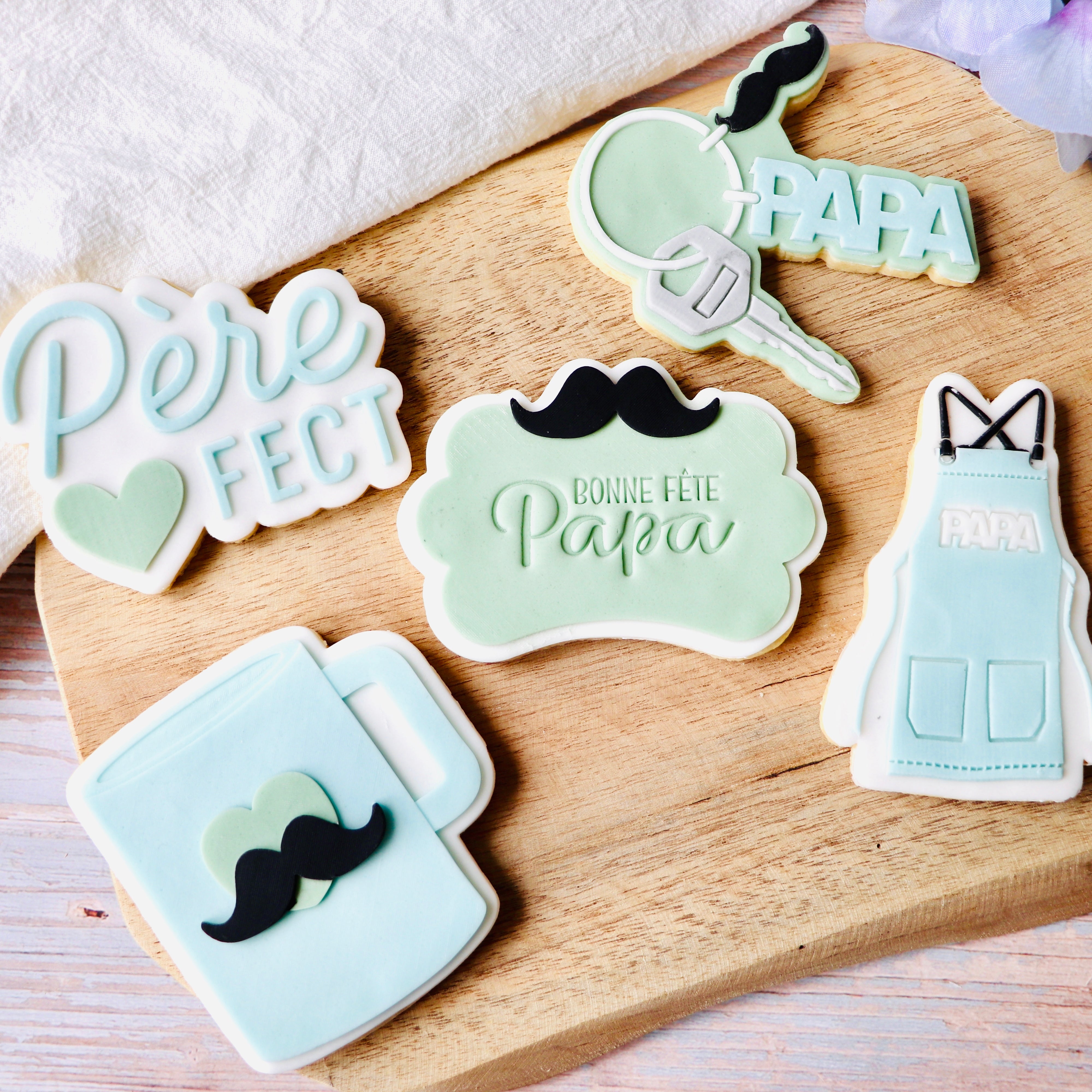 Emporte-pièce et tampon fête des pères : père - fect pour parfait.